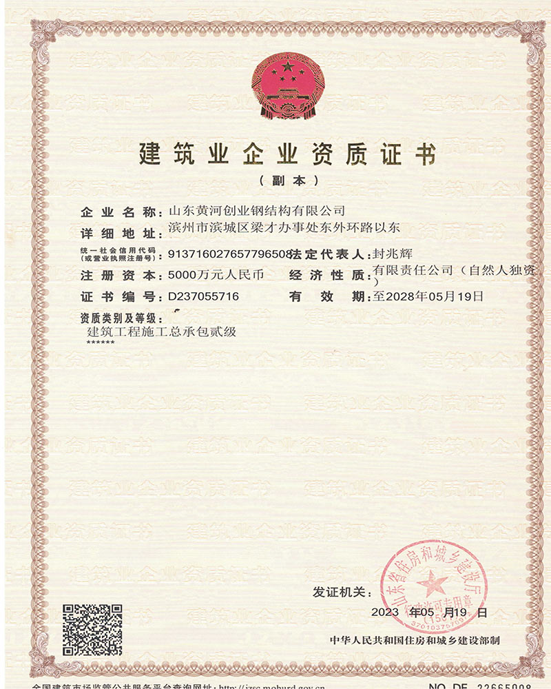 公司為了打造“黃河創(chuàng)業(yè)”品牌,在各級(jí)主管部門的領(lǐng)導(dǎo)下,在激烈的市場(chǎng)競(jìng)爭(zhēng)中,自小至大,自弱至強(qiáng)得到長(zhǎng)足發(fā)展,經(jīng)過(guò)不斷努力,公司先后被山東省列為重點(diǎn)工程企業(yè);山東省級(jí)先進(jìn)企業(yè);誠(chéng)信企業(yè);連續(xù)多年被授予濱州市守合同、重信用企業(yè);獲得金融機(jī)構(gòu)信用AA級(jí)證書(shū);濱州市建筑重點(diǎn)企業(yè),2016年度被授予“濱州市建筑重點(diǎn)企業(yè)”、“濱州市建筑優(yōu)秀企業(yè)”、“濱州市建筑業(yè)誠(chéng)信企業(yè)”、“山東省建筑業(yè)誠(chéng)信企業(yè)”,2021年被市局評(píng)為“濱州市鋼結(jié)構(gòu)協(xié)會(huì)主任委員單位”。連續(xù)多年被評(píng)為“突出納稅貢獻(xiàn)戶”。2022年被市應(yīng)急管理局評(píng)為“安全生產(chǎn)標(biāo)準(zhǔn)化三級(jí)企業(yè)”,多年被評(píng)為“濱州市建筑業(yè)協(xié)會(huì)優(yōu)秀會(huì)員單位,形成了“黃河創(chuàng)業(yè)”的品牌,建設(shè)項(xiàng)目參加QC小組競(jìng)賽也多獲得二等獎(jiǎng)、三等獎(jiǎng)。